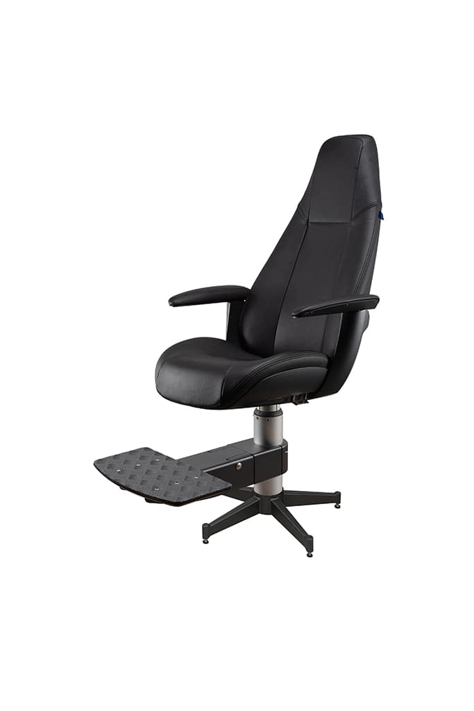 The Norsap 1100 series offers a modern design solution with comfort and ergonomics in mind. It has a height adjustable footrest with the ability to be folded up and rotate 360 degrees around the chair, and has the 100 mm diameter column. The 5-star legged base is ideal for larger off-shore facilities and vessels or on-shore facilities.Min seat height: 65 cm